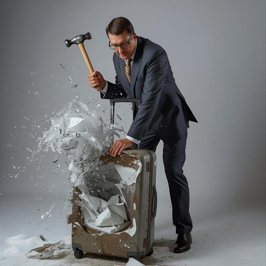 planned obsolescence in the manufacturing of suitcases. My grudge is this: when a suitcase gets a bit damaged, when the wheel pops off, a zip breaks, or the retractable handle won't stay up anymore, the whole bloody thing turns into trash.
